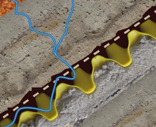 Dans les tunnels revêtus de béton, l’un des défis les plus importants consiste à contrôler les infiltrations d’eau provenant du massif rocheux. Ces infiltrations génèrent une pression hydrostatique sur la géomembrane en PVC utilisée comme barrière d’étanchéité entre le béton primaire et le revêtement final. Si elle n’est pas correctement évacuée, cette pression peut engager l’étanchéité et provoquer une accumulation d’humidité derrière la membrane en affectant la durabilité de l’étanchéité.