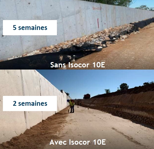 L’utilisation d’ISOCOR 10E a permis de réaliser des économies considérables en termes de temps de remblayage contrôlé, en éliminant le travail de fabrication sur place de matériaux granulaires.