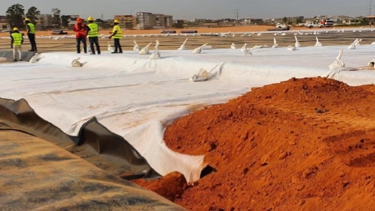 Traditionnellement, le système de confinement des traitements des déchets comprend un ensemble de matériaux tels qu’une barrière étanche d’argile bentonite, une géomembrane PEHD, un géotextile de protection et une couche de drainage granulaire d’une épaisseur maximale de 50 cm, sur laquelle les déchets sont déposés. Cette méthode, bien qu’efficace, implique des coûts d’investissement et d’exploitation élevés, un temps d’installation et un risque opérationnel.