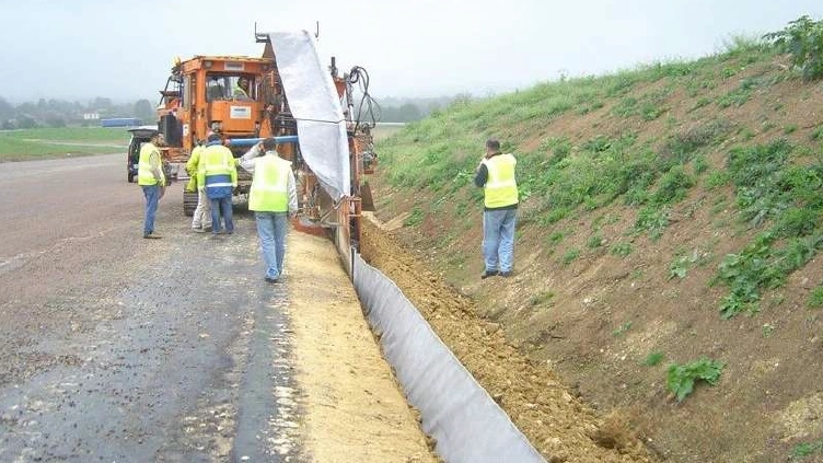 Pour éviter les infiltrations latérales, nous avons utilisé notre solution RoadDrain. Ce géocomposite drainant agit comme une barrière qui canalise et élimine rapidement l’eau provenant des côtés, l’empêchant ainsi d’atteindre les couches de base et de fondation de la route. Cette solution contribue à éviter la saturation des sols sous la chaussée, améliorant ainsi leur durabilité et réduisant les coûts de construction et d’entretien.